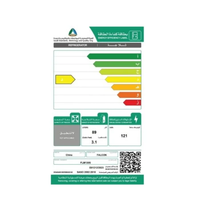 مواصفات ثلاجة باب واحد فالكون مكتب 3.1 قدم أبيض :